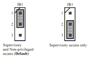 [Next] [Previous] [Up] [Top] [Contents] [Back] 4.4 Jumper Settings 4.4.1 Jumper JB1 - Access ModeWhen the connection is made between pins 1 and 2 of JB1, the module will respond to both Supervisory AM code $2D and non privileged AM code $29. When pins 2 and 3 are connected, the module will respond only to the Supervisory AM code $2D.